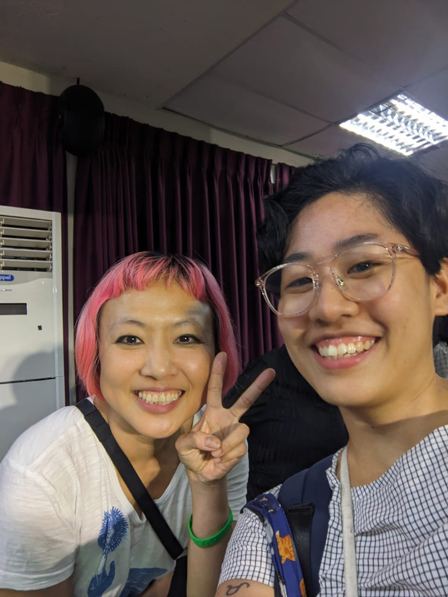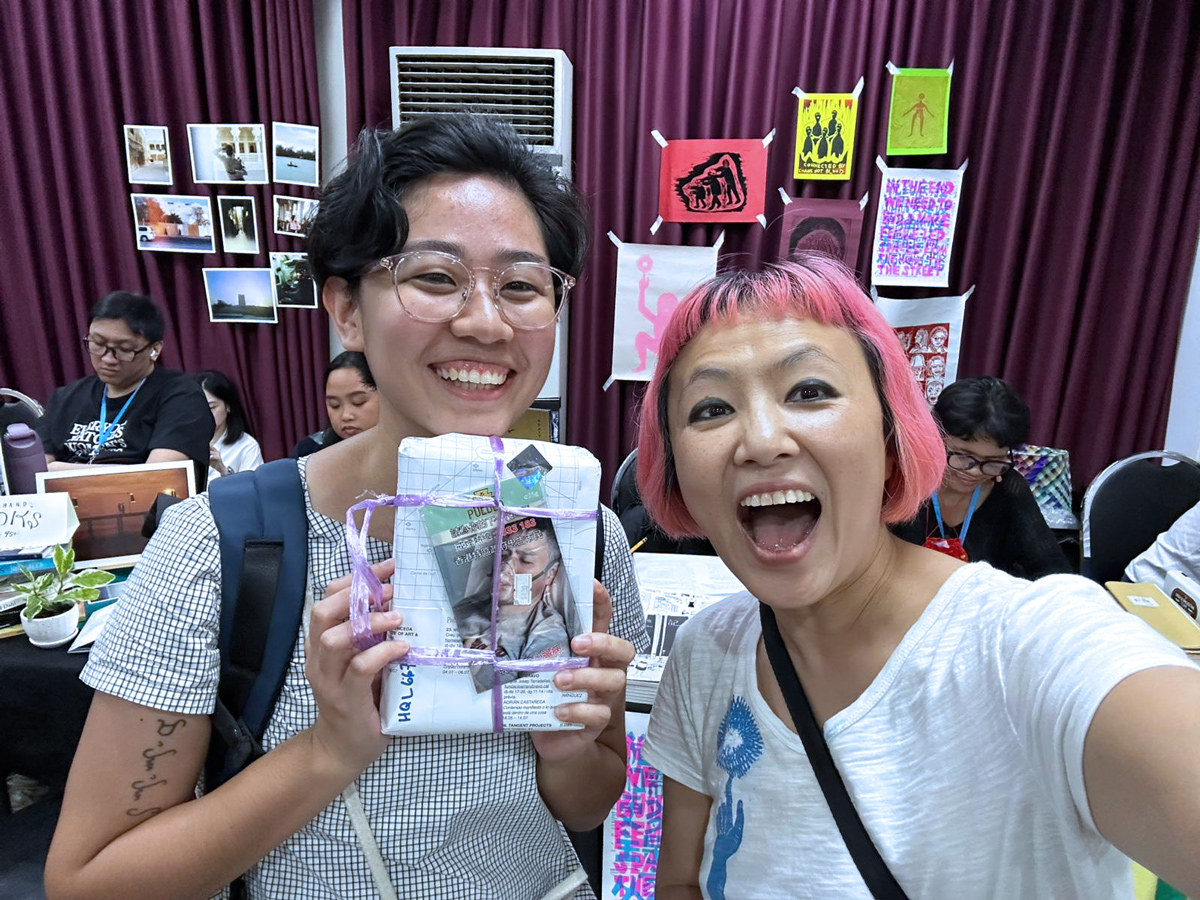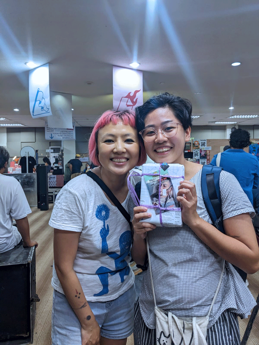 RECEIVER and COURIER LILIN end up arriving to Cebu Art Book Fair around the same time; LILIN grabs some food, and the two enjoy a barrage of selfies before finding their ways through the fair