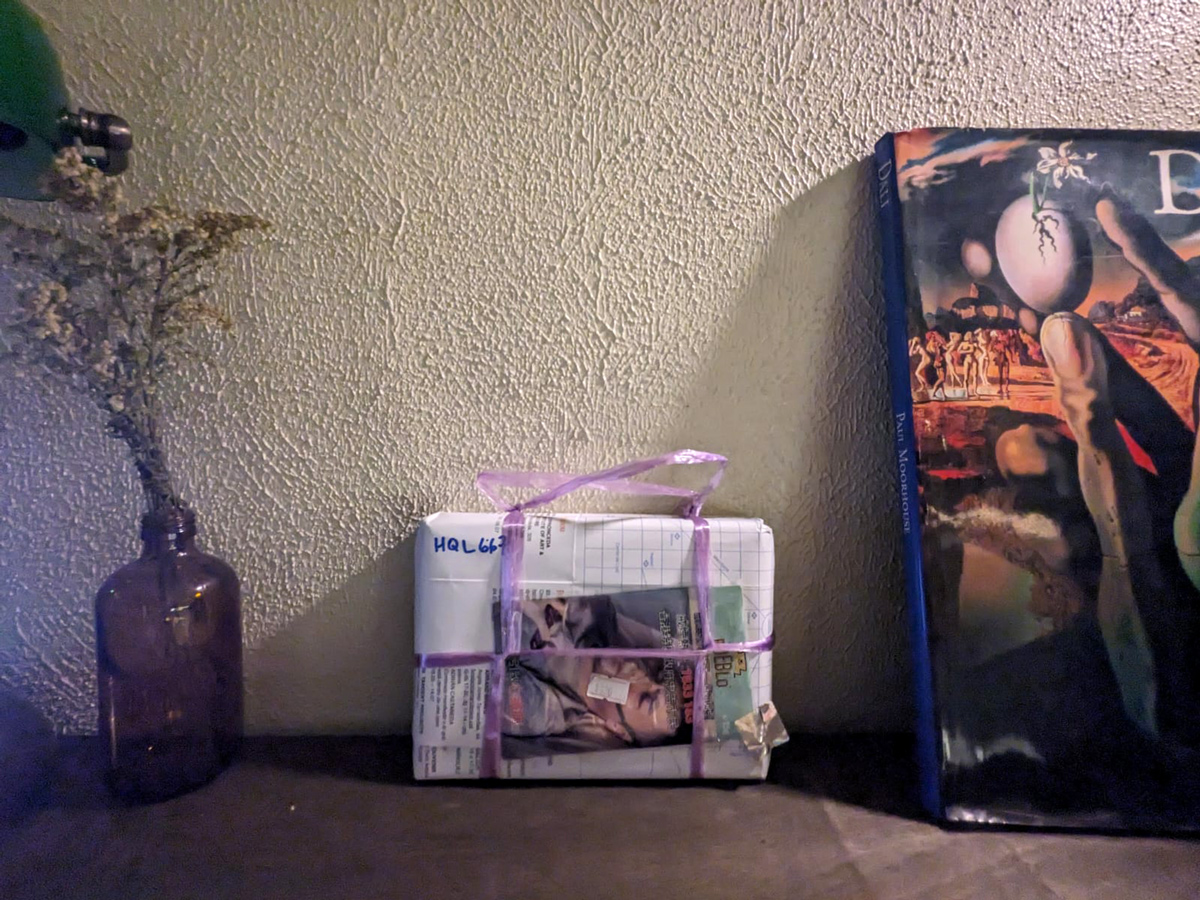 RECEIVER:”an artsy photo of the package in a bookshop/cocktail/jazz bar in Cebu, my last stop before my flight that night