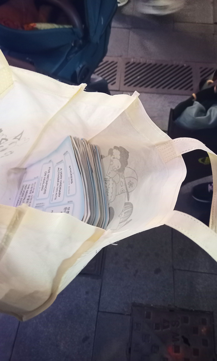 慢遞員Ying報告:「報紙交派送完了!終於見到他本人真好。我邀請他在我工作的地方做場關於藝術家非-檔案的講座。我挺欣賞他,人似乎心地善良又慷慨大方」