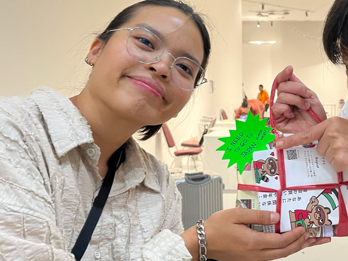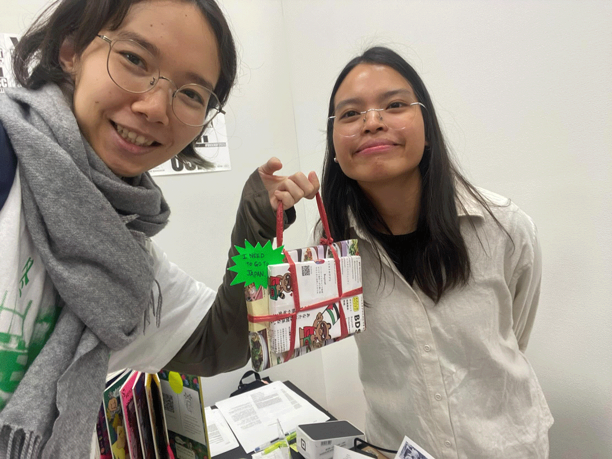 慢遞員易拎正在曼谷參加一場出版貿易展,因此她在攤位上立了個告示,尋找前往日本的人