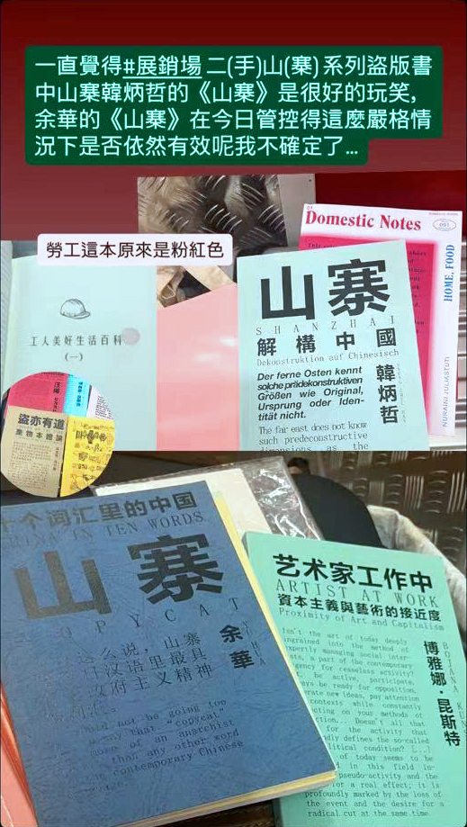 COURIER PORTABLE has an upcoming journey to Bangkok and via a bit of sleuthing online is certain she will meet people headed to Tokyo, since there will be a big gathering of other publication makers and sellers there in the upcoming weeks; however, she runs into some border troubles on her journey to obtain the contents of dispatch HQL-779, so by the time she arrives to the Tuen Mun relay centre there is little time to properly obtain all of the titles in ORDER WC-9820, but a few hours before her flight to Bangkok, she manages to scramble together 3 out of 4, and now re-christened as HQL-779, three volumes (missing Shanzhai: Dekonstruktion auf Chinesisch) make it into the luxurious 46kg of luggage allowance offered by her special virgin flight on Ethiopian Airlines from Hong Kong to Bangkok