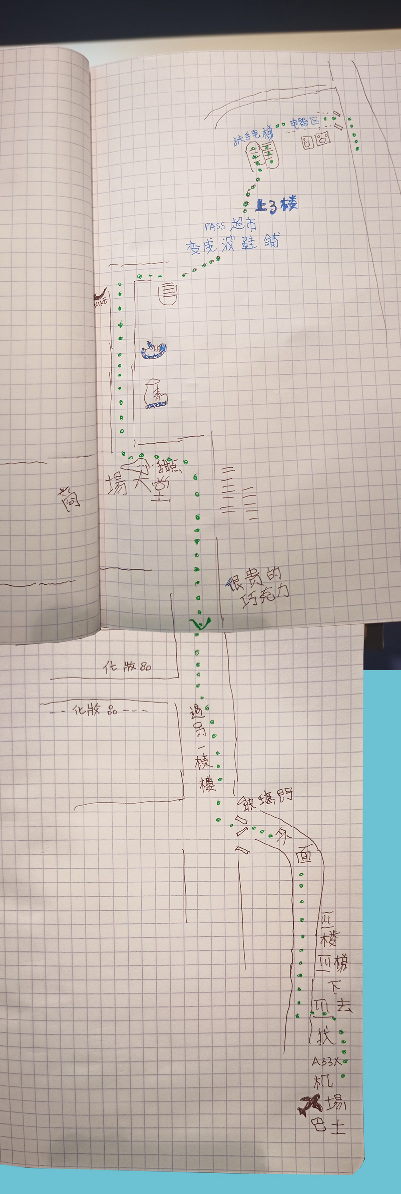 從跨境巴士屯門站跨商場到機場巴士站的地圖