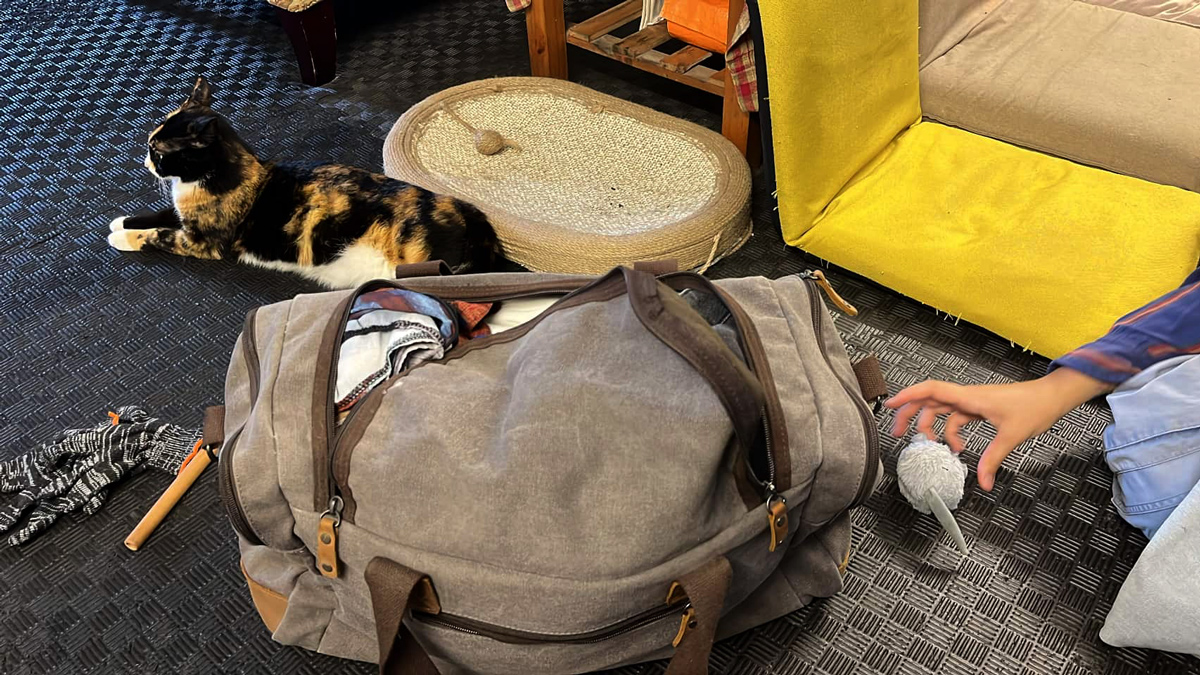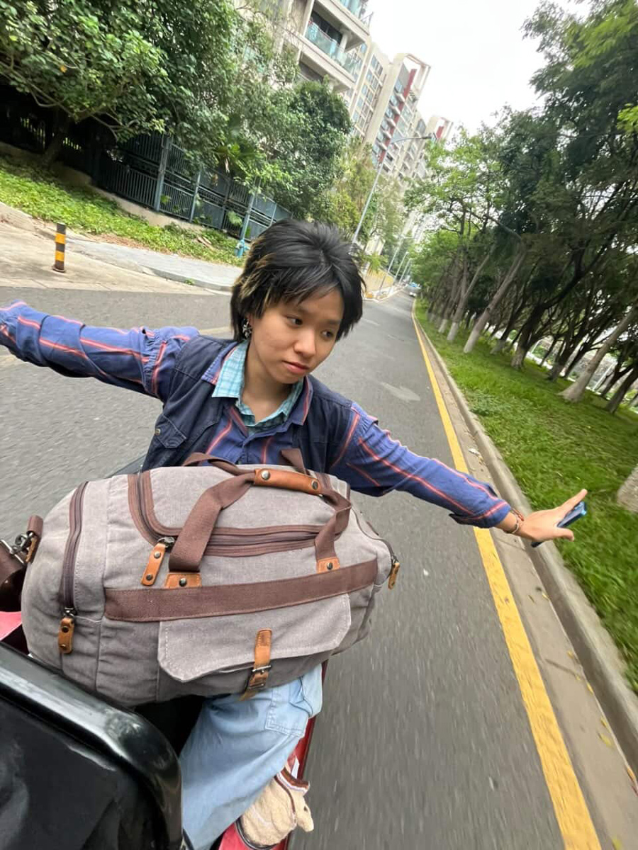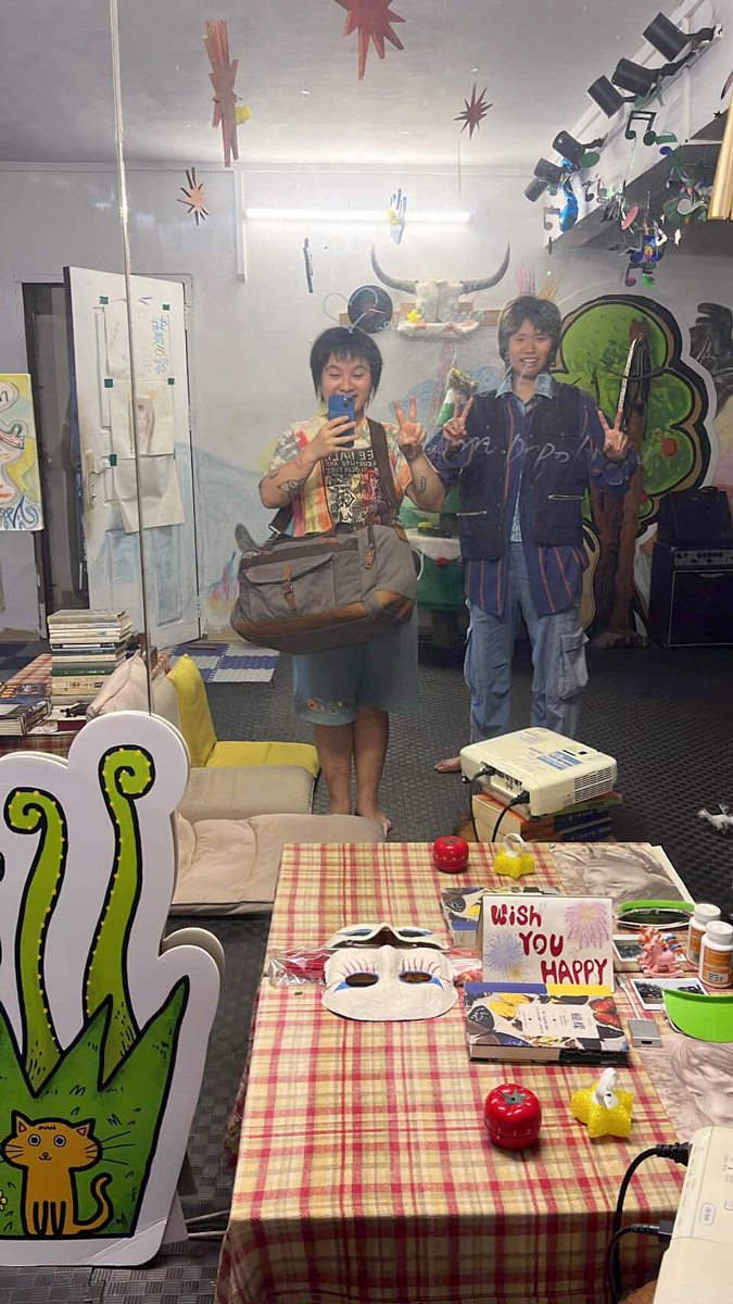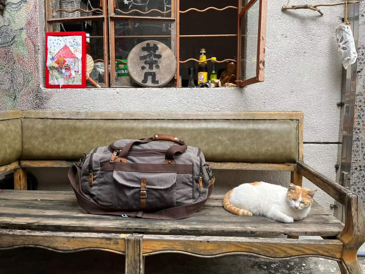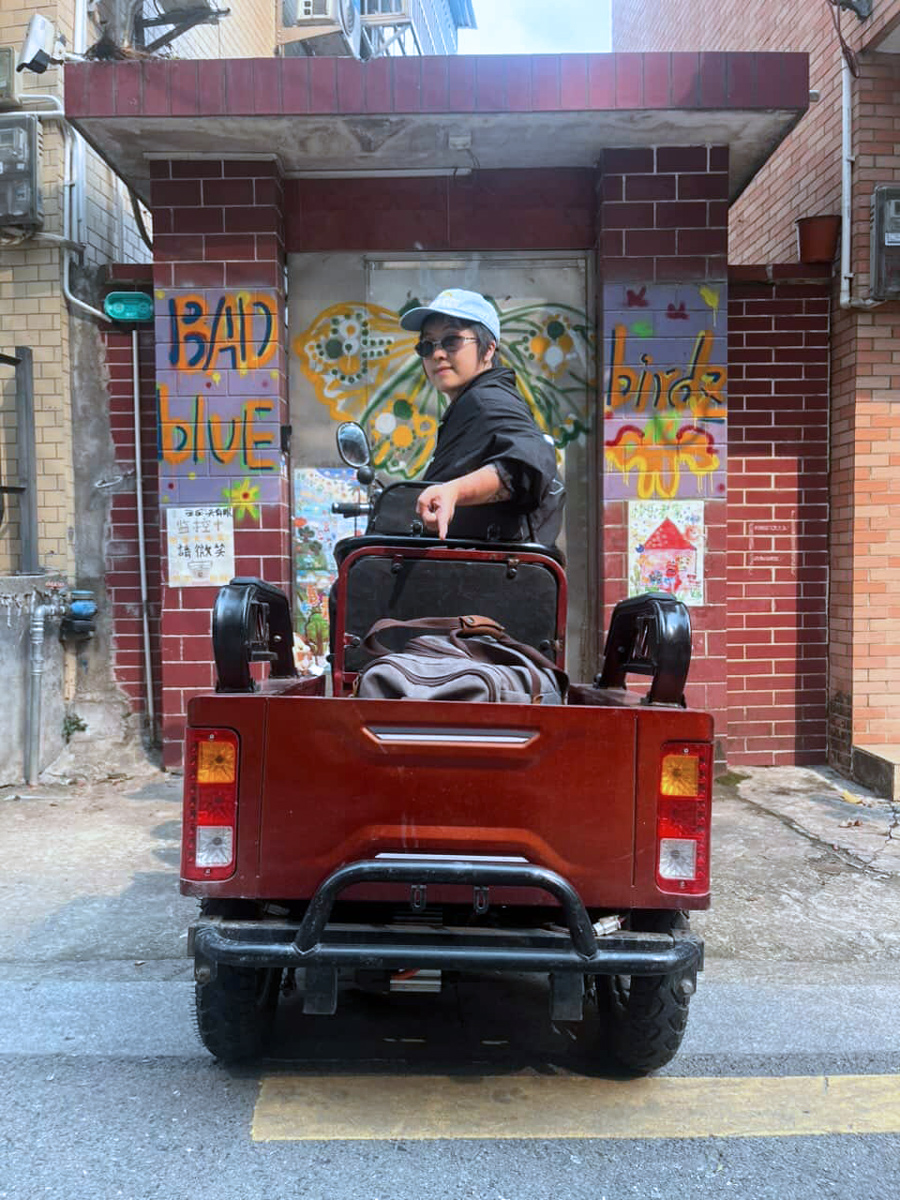 What at first is put into a medium-sized IKEA bag is transferred by COURIER Li'l Miao Baby into a canvas duffel bag, and since it's a long (and fun) scooter journey to Xinzao, COURIER Fridge Sticker joins, and after a successful meet-up the three visit the art space together; all are moved to tears
