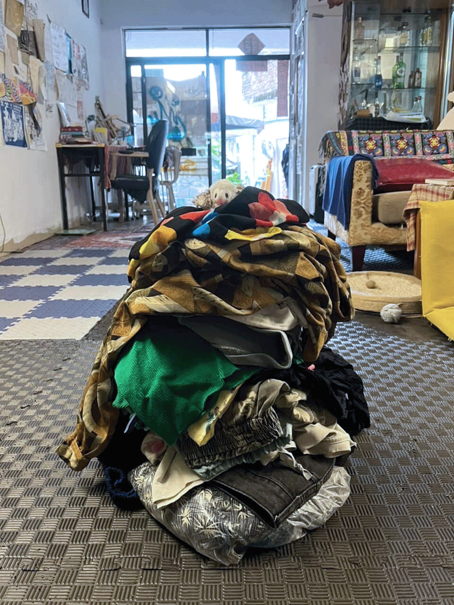Since the formal request of OTHERWISE DISPATCH #003, COURIER PORTABLE has been thinking about how to find hoards of used and unwanted clothing miraculously couriered from the ends of the earth to the Netherlands; with so much waste and, to add a recently acquired neologism, 'enshittification' of fashion all around, it would seem not a difficult task, but who would be willing and able to carry? Someone had once wrote her one-day bio as "Maker of Coincidences", and someone more recently called her "Portable Logistics", so she sets about on her usual couriering duties, waiting for chance