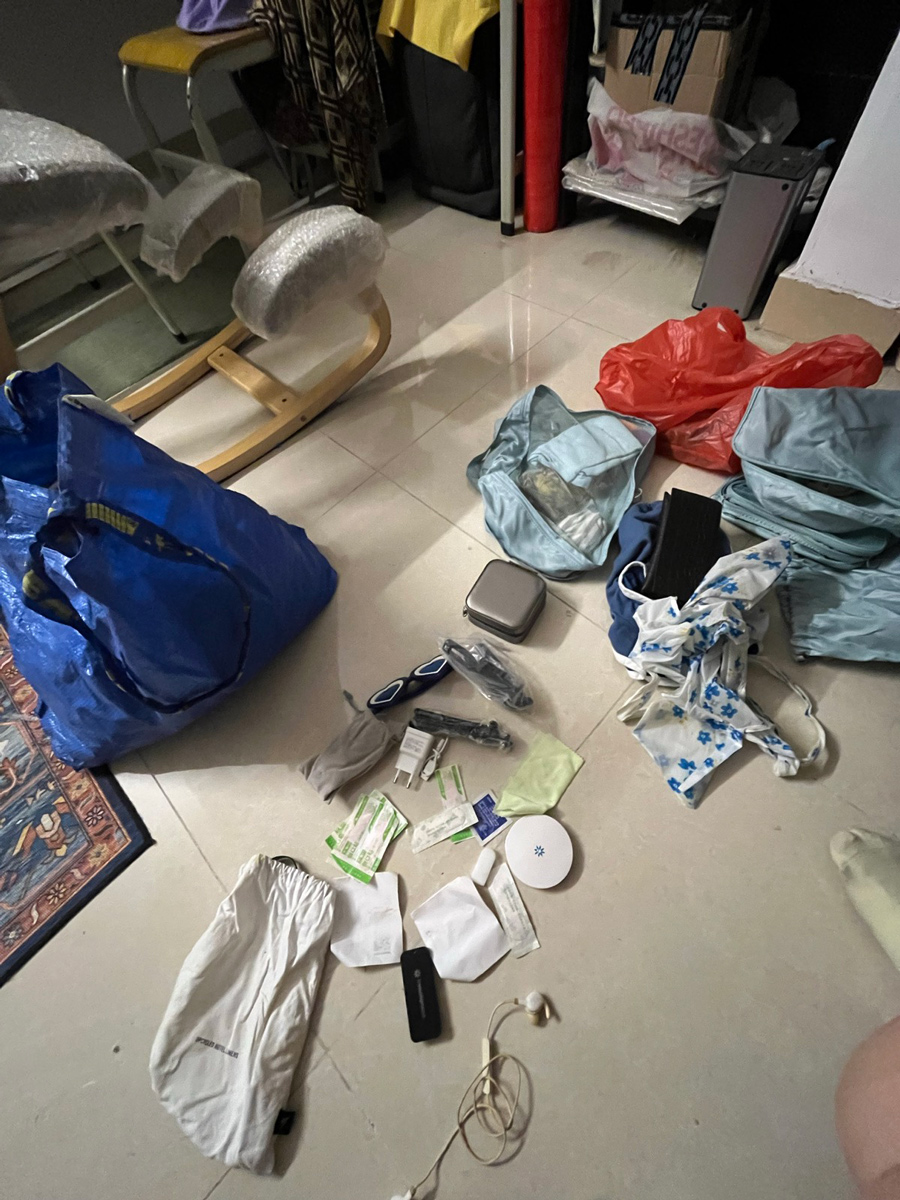 COURIER Tianyi arrives to Guangzhou Baiyun Airport mysteriously with two suitcases, one backpack, but no canvas duffel bag