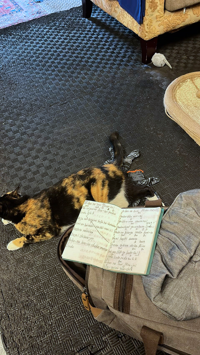 「😂哈哈,還在這個包裡裡面放到我的歌詞本」 “😂Haha, I found my lyric book in this bag“